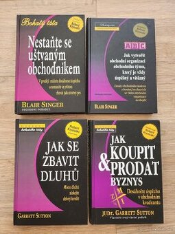 Čtyři nové knihy. 1-Nestaňte se uštvaným obchodníkem - Blair Singer 2-Jak vytvořit obchodní organizaci obchodního týmu, který je vždy úspěšný a vítězný - Blair Singer 3-Jak se zbavit dluhů - Garrett Sutton 4-Jak koupit & prodat byznys - Garrett Sutton Všechny knihy nové. Cena za všechny.Možno i jednotlivě.