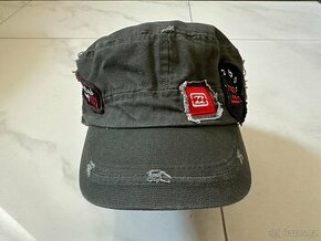 Nová čepice / kšiltovka Billabong s nášivkami, potrhaný vzhled, tmavě zelení, vzadu na stahování. Maximální obvod hlavy 57 cm. Cena 300 Kč.
