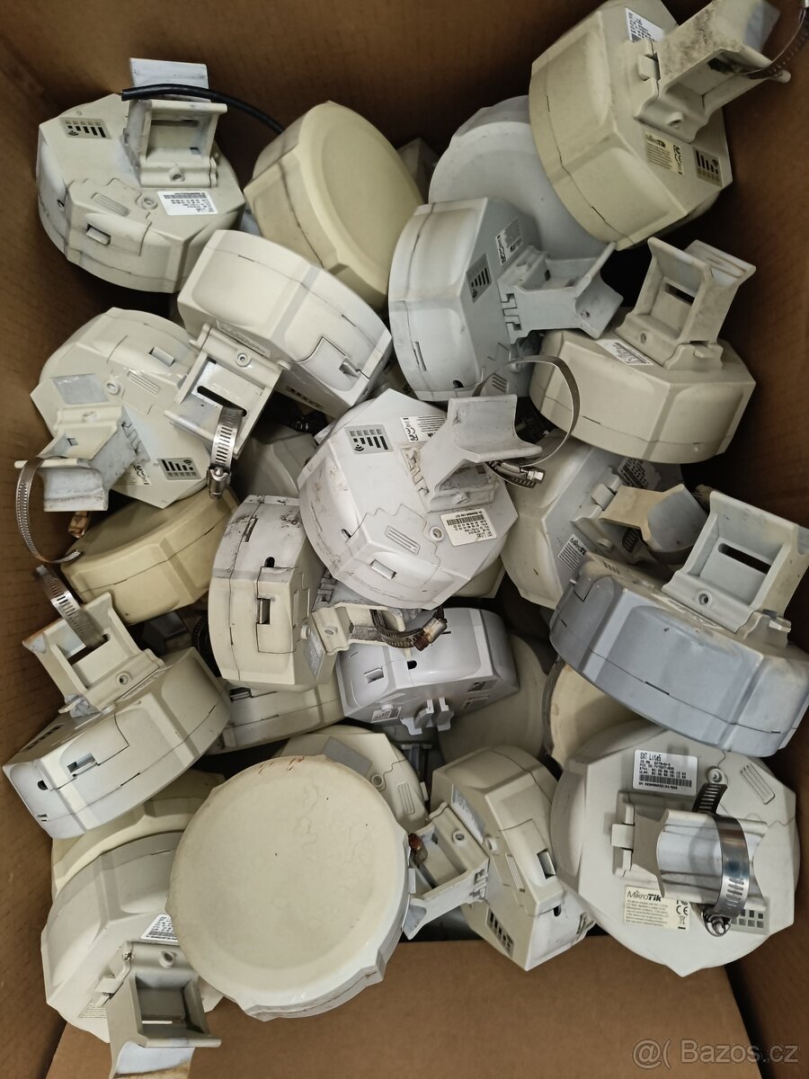 Prodám použité, funkční 5GHz jednotky Mikrotik SXT Lite5 Zažloutlé od slunce. Mám jich více kusů. Bližší specifikace produktu : https://www.wifihw.cz/default.asp?cls=stoitem&stiid=2676 POE + trafo 100,- ks Případní zájemci prosím SMS, e-mail
