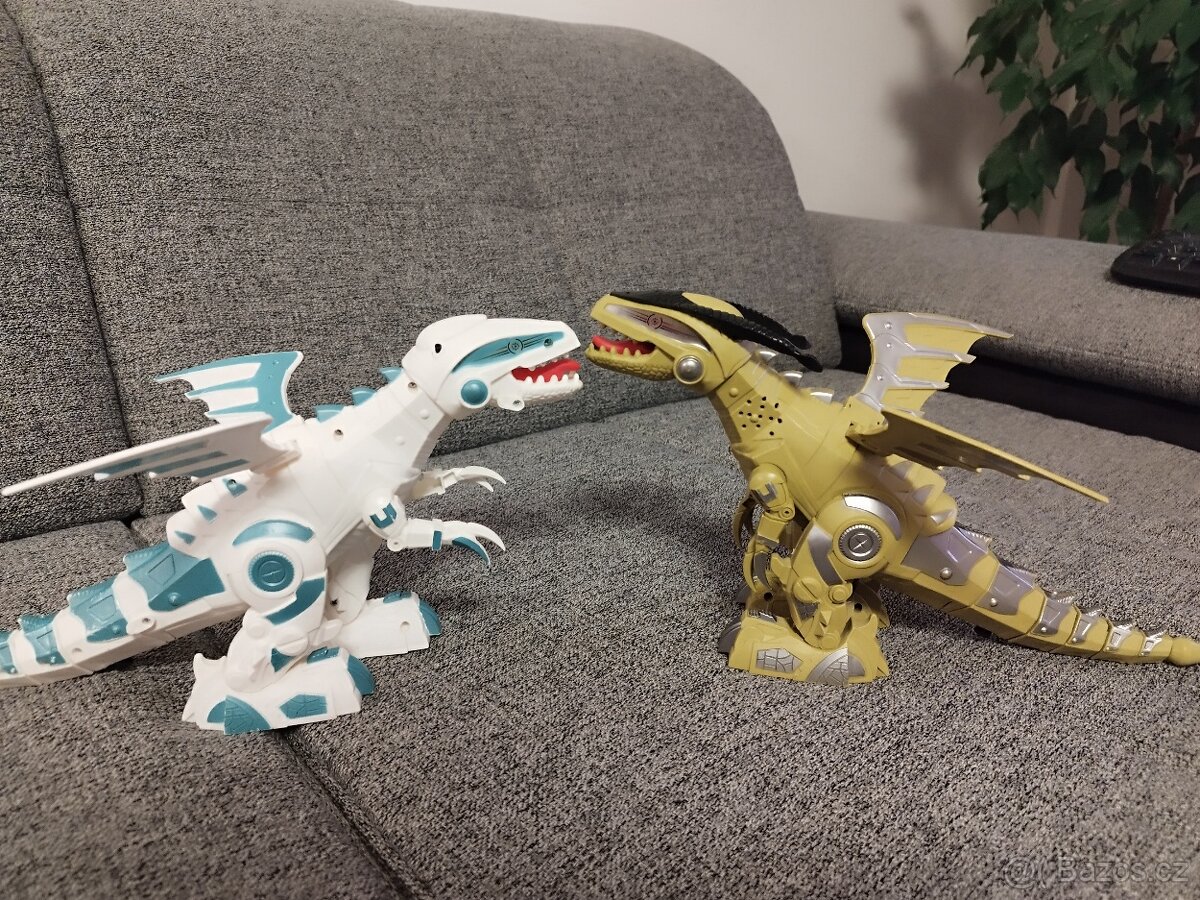 Prodám dva dinosaury na baterky, kteří svítí chodí a vydávají zvuky. Plně funkční.