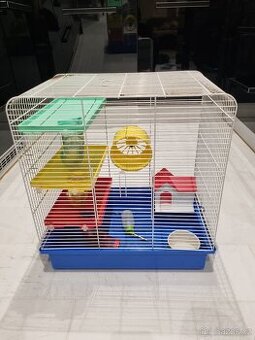 Prodám použitou klec po 1 křečkovi. Součástí vybavení je kolotoč, domeček, keramická miska, pítko, police s tunely. Rozměry klece: Výška: 52 cm Šířka: 49 cm Hloubka: 32 cm