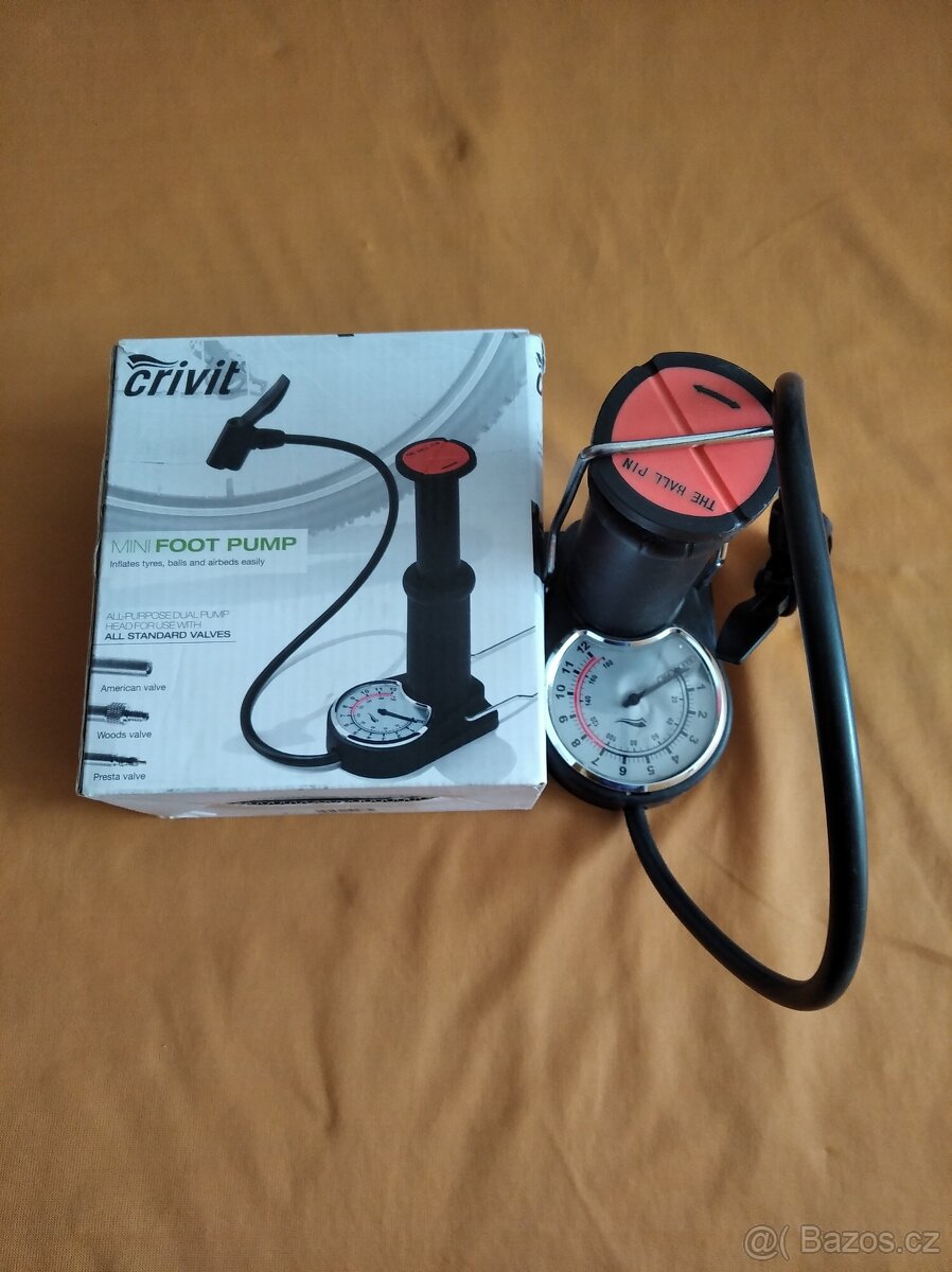 Prodám nožní pumpičku na kola, matrace a pod. s kontrolním tlakoměrem. Vysoká 18 cm