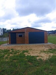 Kovová garáž 7x8m Barva: podobná dřevu Rozměry: Šířka: 6,98 m Délka: 7,98 m Typ střechy: sedlová výška: 2,90 m Boční stěna: 2,13 m Technické údaje: 7m x 8m sedlová střecha Střecha v barvě RAL 7016 GRAPHITE MAT výška boční stěny 2,13 k vrcholu 2,90 1x křídlová brána šířka 3 m výška 2 m (po otevření 2,75x1,90) na pravé straně, barva RAL7016 matná, úroveň T17, VE VÝKLENKU na levé straně 3X1 1x dveře 100x200 cm s klikou a vložkou na levém okraji, barva RAL7016 matná, úroveň T17 1x okno 80x60 PVC RAL7016 vedle dveří na pravé straně, barva zlatý dub barva připomínající dřevo: zlatý dub vodorovné ražení na stěnách T7 rohové a střešní lišty konstrukce z pozinkovaných uzavřených profilů více informací a objednávky ///605516094 , biuro@liderstal.cz///