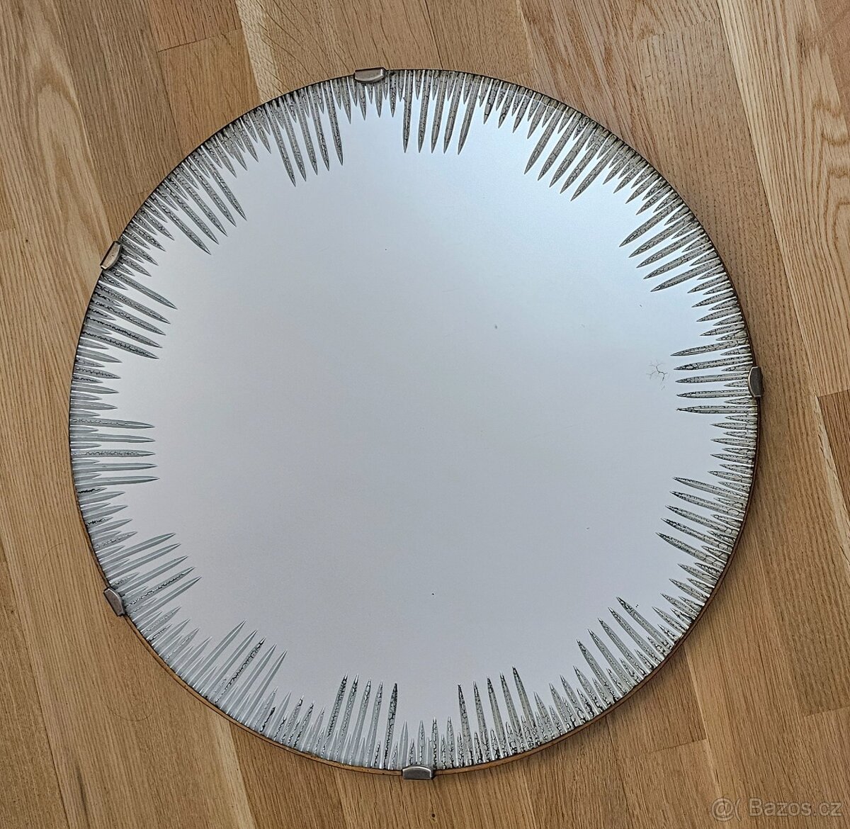 Kulaté zrcadlo s dekorativním leptem. Průměr 50 cm.