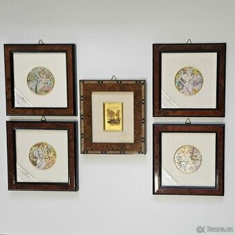 Cena: Dohodou. Velmi zachovalé obrázky, jde o stříbrné plakety s ručním malbou, znázorňující čtyři roční období od Alfonse Muchy. Prostřední obrázek k tomu zdarma. Cena dohodou
