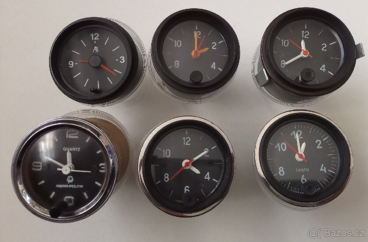Cena: V textu. Prodám nové a také použité funkční hodinky na auto značky VAZ 2103, 2106. Cena každých hodin uvedena na obrázku. Dobírka 170 Kč.