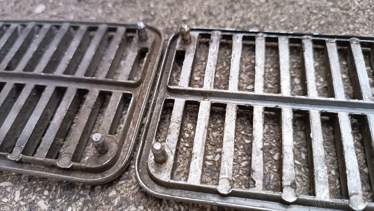 Větrací mřížkyProdám větrací mřížky do karosérie veteránů. 2 totožné kusy. Chromováno. Cena za oba kusy.