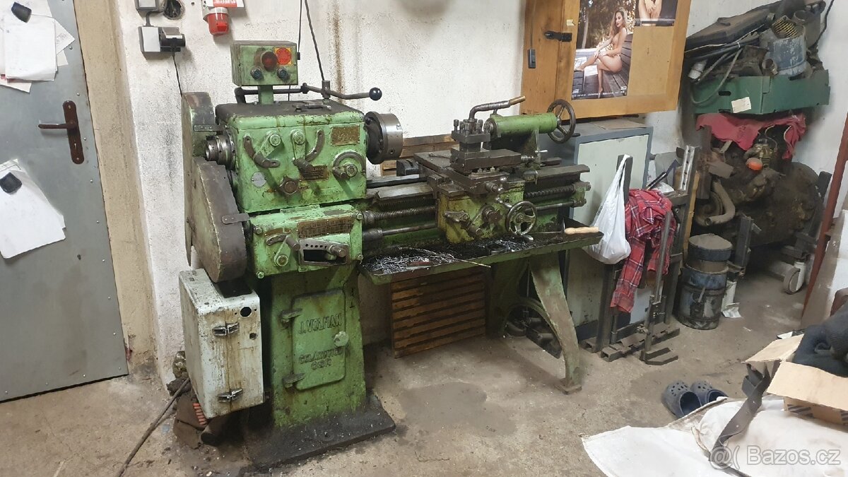 Prodám malý soustruh Volman, rok výroby nejspíš 1937, 8 rychlostí 40-1000 ot/min, funkční strojní posuv podélný i příčný, možnost řezání závitů - nezkoušel jsem, konik mk4, sklíčidlo 160, motor 3kW, možnost vyzkoušet, někomu na drobné domácí práce ještě udělá službu, já přecházím na větší.