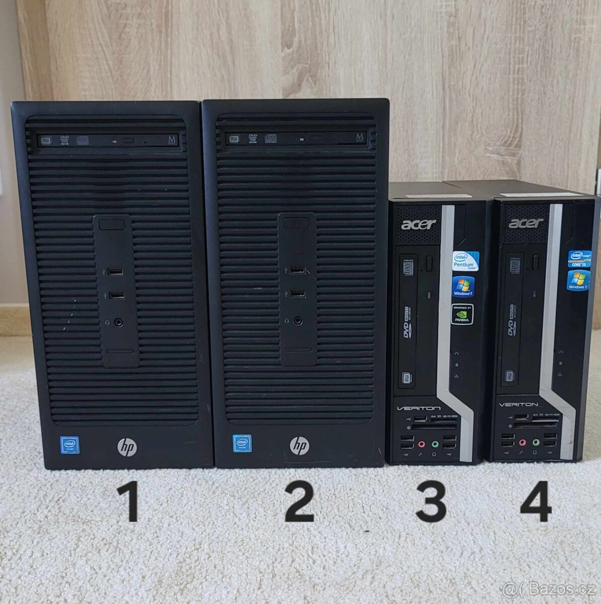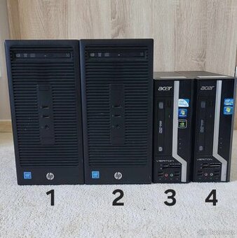 Prodám tyto 4 počítače spíše na kancelářské nebo domácí využití. Všechny 4 jsou plně funkční (odzkoušené), vyčištěné a přepastované. Všechny jsou bez disků a RAM pamětí. U jednoho akorát chybí zdroj a u druhého nefunguje jeden RAM slot. Konkrétní parametry níže... Parametry: ------------------------------------------------------------- PC 1: CPU: Intel Celeron G3900; 2,80Ghz; 2jádra/2vlákna -na DDR4 RAM paměti -chybí zdroj -plně funkční CENA: 400Kč PC 2: CPU: Intel Celeron G3900; 2,80Ghz; 2jádra/2vlákna -na DDR4 RAM paměti -plně funkční CENA: 500Kč PC 3: CPU: Intel Pentium E5700; 3,60Ghz -na DDR3 RAM paměti -plně funkční CENA: 400Kč PC 4: CPU: Intel Core i3 2100; 3,10Ghz; 2jádra/4vlákna -na DDR3 RAM paměti -jeden nefunkční RAM slot, ale jinak plně funkční CENA: 400Kč Preferuji osobní předání v Praze. O víkendu možné i Příbram nebo Dobříš. V případě zájmu mne neváhejte kontaktovat přes sms nebo email. Počítač, pocitac, pc, kancelářský, kancelarsky, herní počítač, herni pocitac, he