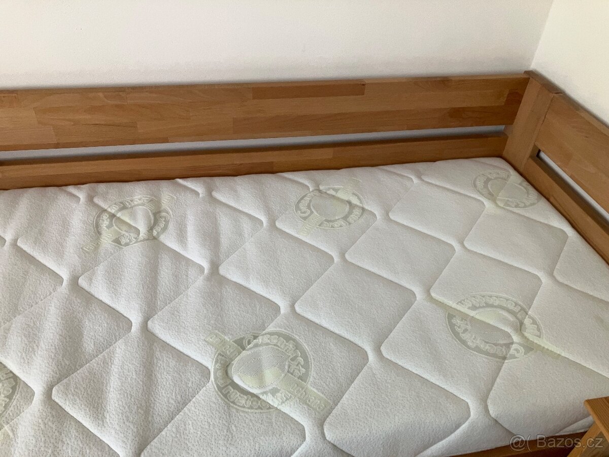 Prodám kvalitní matraci Adrastea Medium v rozměru 80 cm x 200 cm zakoupenou 11/2024 v prodejně Světspánku.cz. Původní cena 6 990 Kč. Používána zhruba půl roku. Z popisu na webu: „Sedmizónová matrace o střední až vyšší tuhosti kombinovaná z pružné studené pěny na obou ložných plochách a tuhého jádra. Nosné jádro se změkčenými ramenními zónami tvoří pevnou oporu pružné horní vrstvě. Horní vrstvy ze studené HR pěny umožňují díky sedmizónové profilaci ergonomické přizpůsobení matrace lidskému tělu. Je ideální pro osoby vyhledávající tuhou, ale přitom pružnou matraci, která nebude tlačit. - 7 anatomických zón, které podpoří správné držení těla ve spánku - otevřená struktura studených HR pěn pro ještě lepší provzdušnění - vysoká životnost na základě použití nejkvalitnějších pěn - snadná údržba matrace díky snímatelnému a pratelnému potahu“ Technický popis: výška matrace: 19 cm tuhost: 4/5 nosnost: 130 kg potah: Greenfirst, prošitý antialergickým rounem PES