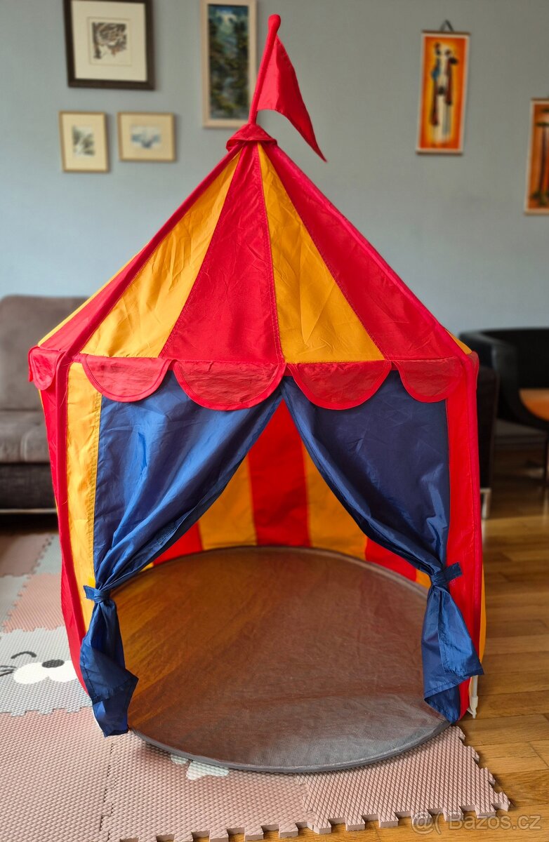 Nabízím k prodeji dětský cirkusový stan na hraní, zn. Ikea. Lze do interiéru i ven, ze spodu má pevnou nepromokavou fólii.
