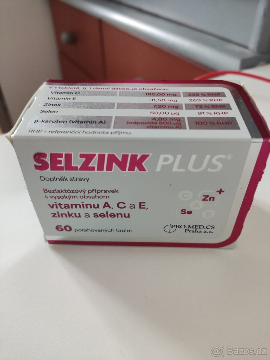 Prodám nepoužité balení 60 tablet doplněk stravy SELZINK PLUS. Obsahuje selen, zinek, vitaminy A, E a C. Selen a zinek podporují správné fungování imunitního systému, vitamíny C a E k ochraně buněk před oxidativním stresem. Možno i poslat, ale POUZE přes Zásilkovnu a při platbě předem.