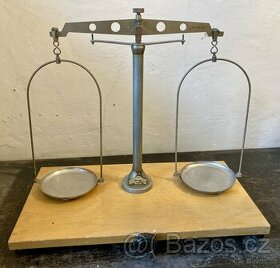 Staré miskové laboratorní váhy. Bez závaží. Před rekonstrukcí, chybí jazýček a závaží na lanku. V případě zájmu pište email nebo sms.