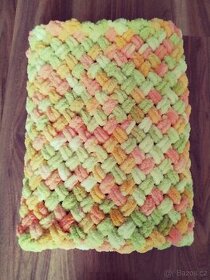Velmi jemná a nadýchaná dečka pro miminka do postýlky nebo do kočárku.Pletená na rukách z příze puffy ,rozměr 70x90 cm- 500 Kč, prát na 30'C ,nežehlit, do sušičky dle uvážení