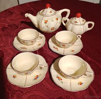 Keramický starý čajový servis s květy - Ditmar Urbach