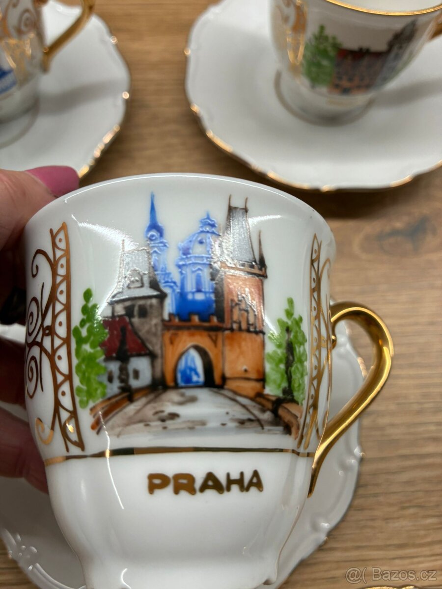 Šálek s podšálkem, obrázky Prahy, sběratelská sada, porcelán - 6ks