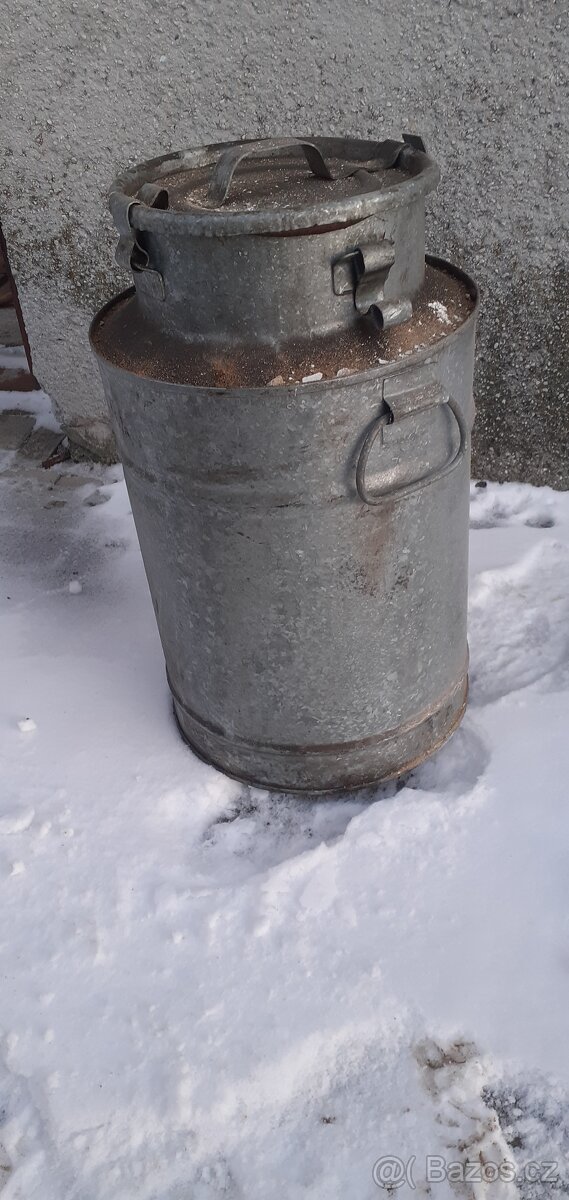 Pozinkovaná plechová konev. Od nafty.