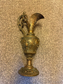Cena: Nabídněte. Prodám krásnou konvici s výlevkou, bohaté ornamenty. Bronz nebo podobná slitina. Výška po nejvyšší část 43 cm, největší průměr 14 cm, podstavec průměr 13 cm. Bez poškození. Detaily mailem. Rychlé jednání, akceptuji nejvyšší nabídnutou cenu. V Praze osobní předání, při platbě předem i Zásilkovna.