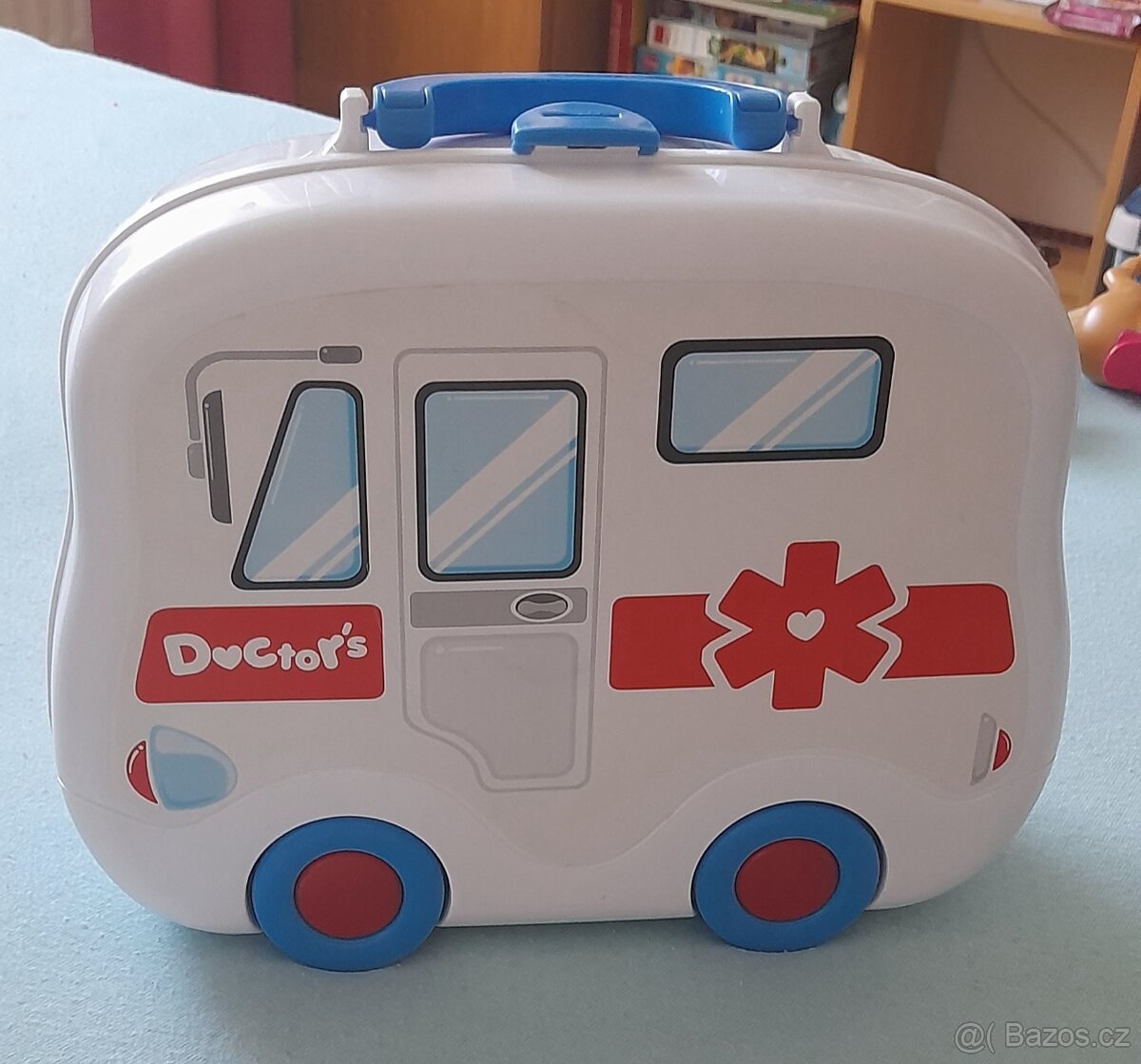 Prodám pojízdný lékařský kufřík pro malé záchranáře. Naše dcera léčila většinou plyšáky.