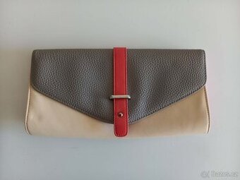 Psaníčko, kabelka – barva béžová, korálová, šedá. Umělá kůže, hladká béžová, strukturovaná šedá a detaily v korálové barvě. Zapínání na patentku, uvnitř kapsička na zip. Rozměry 20,9 x14 x cca 2 cm. Bez poškození, vzadu drobně otlačená, myslím, že jsem ji použila tak jednou, dvakrát. Značka F&F.