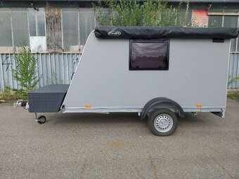 Prodám bržděný minikaravan včetně markýzy viz. foto. včetně vybavení. Nájezdové klíny, záložní baterie, lednice, vařič, botník. Plocha na spaní 195x150. Možnost úpravy na sezení. Pod postelí úložná plocha. Ve všech okne síťky + rolety. Nutno dokončit elektroinstalaci.