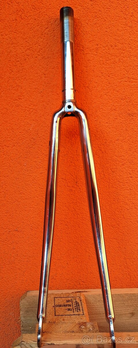Hi-Ten chromovaná vidlice 1" délka sloupku 170mm, rovná, nebouraná, závit nepoškozen. Vidlice je používaná, chrom viz foto.