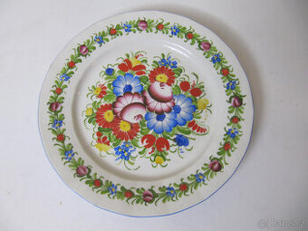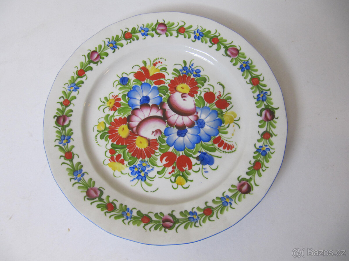 ručně malovaný talíř barevnými květy Domažlice - Chodsko průměr 26cm, 2 ks cena za jeden 100,-Kč, za oba 180,-Kč