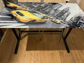 Predám sklenený stolík, ktorý je vhodný na rôzne činnosti, prioritne ako "písací" (či počítačový). Kupovaný v KIKA pred cca 3 rokmi. Je celý čierny s motívom skla New York, je celokovový až na sklenenú dosku navrchu. Na jednej strane má tenký škrabanec - viz fotka, ale nie je takmer vidieť. Na jednej strane je odlepený "prípoj" viz fotka, ale tri ostatné sú tak ako majú byť, takže sklo sa absolútne nehýbe a stačí pridať/ doplniť chýbajúce lepidlo - ale to prakticky ani nie je potrebné. Stôl predávam z dôvodu nadbytočnosti a je potrebné sa poň zastaviť osobne v Brne. Viac fotiek kľudne po dohode. Dĺžka je - 110 cm; šírka je - 55 cm a výška je - 75 cm. V prípade záujmu alebo informácií PROSÍM nevolať (nezdvíham)!! Napíšte mi prosím na mail matuseduardnovak@gmail.com !!!!