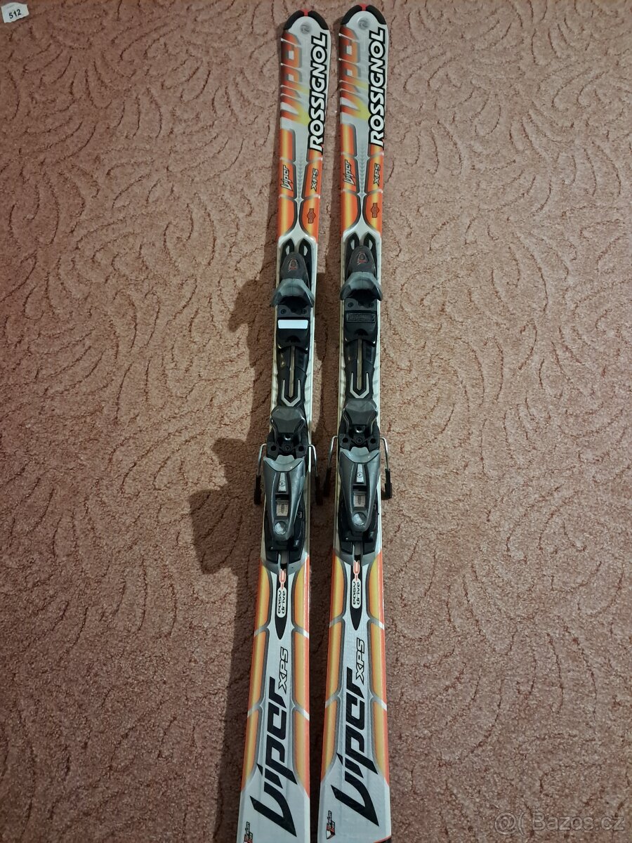Málo využívané lyže Rossignol Viper XP5, délka 162cm, R16m, po servisu hrany a skluznice bez poškození, italské lyžáky LANGE, velikost 27, 312mm