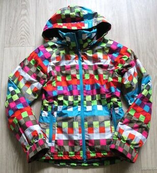 Dámská - dívčí zimní lyžařská bunda, barevná - nepřehlédnutelná na svahu, vodní sloupec 5000, má protisněhový pás, olivky dole na stažení, kapsu na rukávu na permici, kapuce se dá odepnout. V moc pěkném stavu. Vel. 36 Délka - 61 cm, zadní díl - 67 cm, šířka - průramky - 48 cm, rukáv od kapuce - 76 cm