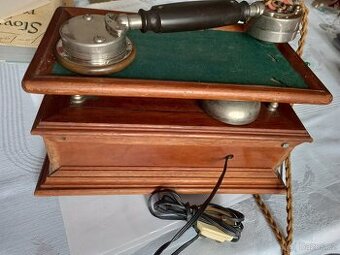 Prodám starý dřevěný telefon. Dříve byl připojen na pevnou linku a fungoval. Cena 1 500 Kč.