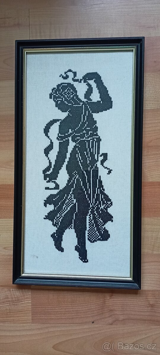 Prodám obrázky, černý rám, velikost výška 44cm, šířka 23 cm, vyšívaný vzor