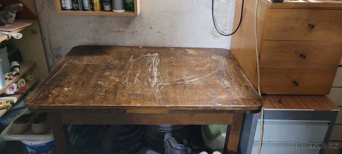 Prodám starožitný stul z masivního dřeva stul je v dobrém stavu ale je vhodný na renovaci stul se da rozložit více info po telefonu rozměry viz foto.