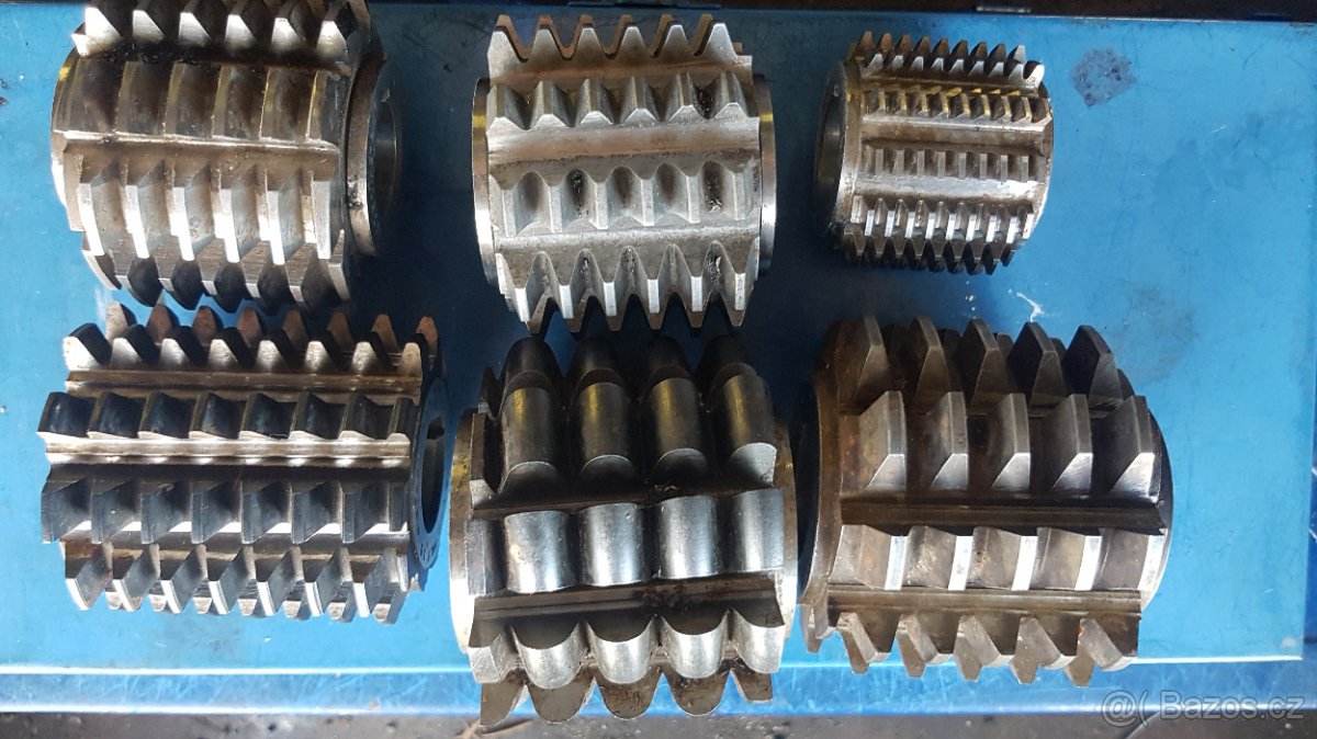 Cena: V textu. Prodam tyto pouzite odvalovaci frezy viz.foto.Cena za komplet 4 000kc.Mozno i jednotlive.Freza na ozubena retezova kola je uz prodana!!!