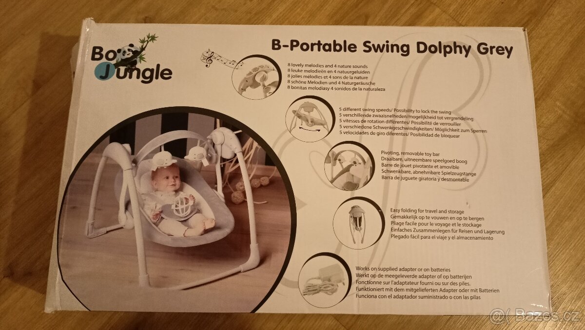 Houpačka vhodná pro děti od 3kg do 9kg. funguje za pomocí síťového kabelu (je součástí) nebo 4x baterií C/LR14 1,5V, 5-ti bodový bezpečnostní pás, funkce časovače (15, 30, 45 nebo 60 minut) 5 různých rychlostí houpání přehrává 8 různých melodií + 4 zvuky přírody s možností nastavení hlasitosti. Minimálně využité. Možno dovézt v okolí Plzně. Volat jen do 19h. Poté jen sms.