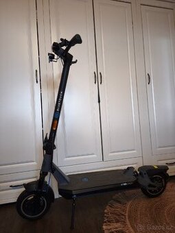 Elektrická koloběžka o výkonu 500 W a dojezdu až 60 km 4 rychlostní stupně: režim chůze - eco režim - jízdní režim - rychlý režim Max. rychlost 45 km/h (defaultně nastaveno na 25 km/h, lze upravit v aplikaci) Odolná konstrukce z leteckého hliníku a široká nášlapnice Celková hmotnost včetně značkové baterie je 28 kg. Výkonná 46,8V Li-Ion baterie LG s bezkonkurenční kapacitou 21 Ah Nosnost až 120 kg Plná bezdušová kola o velikosti 10" vhodné i pro nezpevněné komunikace, které nepropíchnete Odpružení předního i zadního kola Široká stabilní řídítka LED světlomety vpředu i vzadu osazené čočkou a po stranách efektní LED podsvícení pro větší viditelnost Přední bubnové, zadní motorické brzdy Vlastní aplikace s ovládáním a možností uzamčení stroje. ,Plněfunkční v pěkném stavu,rok stará,ježděno jen za sucha jaro a leto,stàle v záruce,faktura 3/2025 na baterii záruka 3roky!!!!!