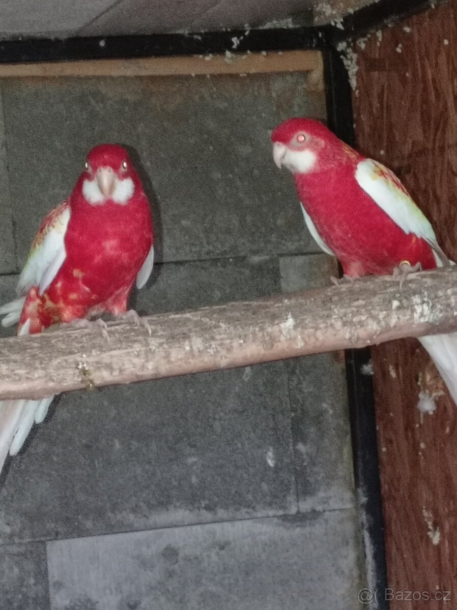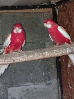 Prodám chovný pár rosela rubino rok 2022pravidelny odchov mláďat až na bidlo prodávám z důvodu potřebují místo pro jiné papoušci prosím pouze volat na 775647313
