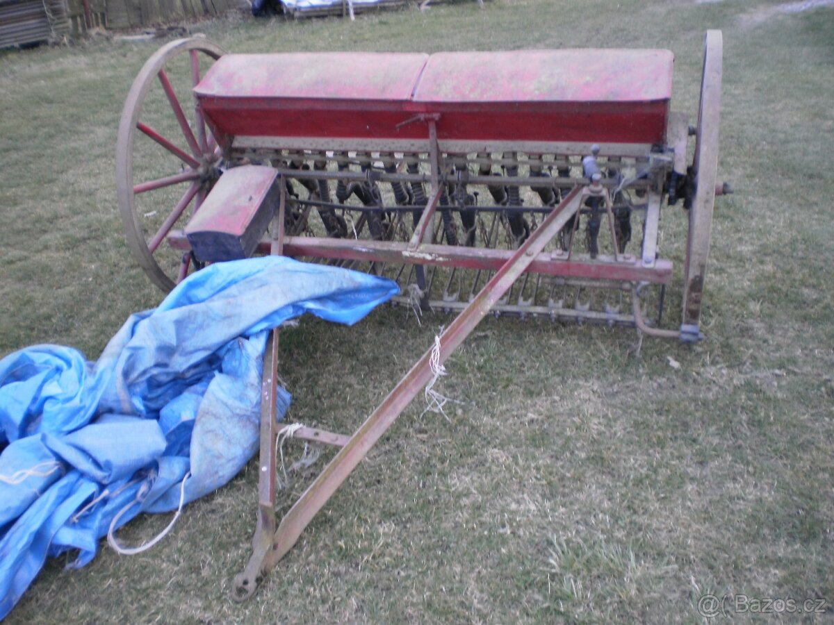 Prodám již nevyužitou ve velmi pěkném stavu taženou sečku se záběrem 2,1m. Kola jsou podložena na hranoly aby se nebořila. 1 Kolo lehce poškozená výdřeva, funkčně ok.