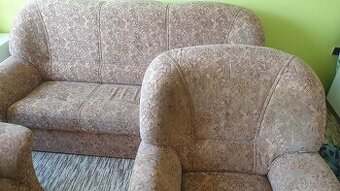 K prodeji látková sedací souprava a dvě křesla s taburetkou. Sedačka není rozkládací. Je v zachovalém stavu, žádné skvrny, pouze běžné opotřebení. Nikde není odřená. Je z nekuřácké domácnosti bez domácích mazlíčků. PC vysoká. Barva hnědá se vzorem. Rozměry: sedačka Š×V×D=80×90×200 křeslo 90×95×90 taburetka 50×40×60 K prodeji pouze dohromady, nutný vlastní odvoz. Lokalita kousek od Jičína. Více info na telefonu.