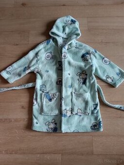 Dětský župan, světle zelený se zvířátky, hodí se pro kluka i holčičku. Velikost 116, délka od ramene u krku dolů 59 cm. Osobní odběr v Praze 8 Bohnice, zásilkovna, balikovna. V případě zájmu prosím pište přes formulář/ mail.