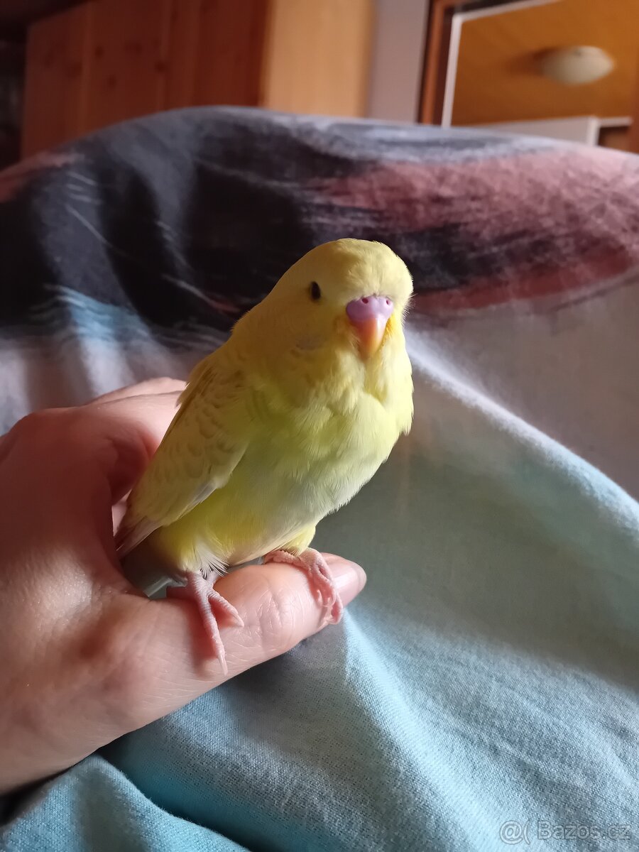 Prodám mladou ochočenou andulku,jde na prst, narozenou 6.1.2026. Cena 200Kč