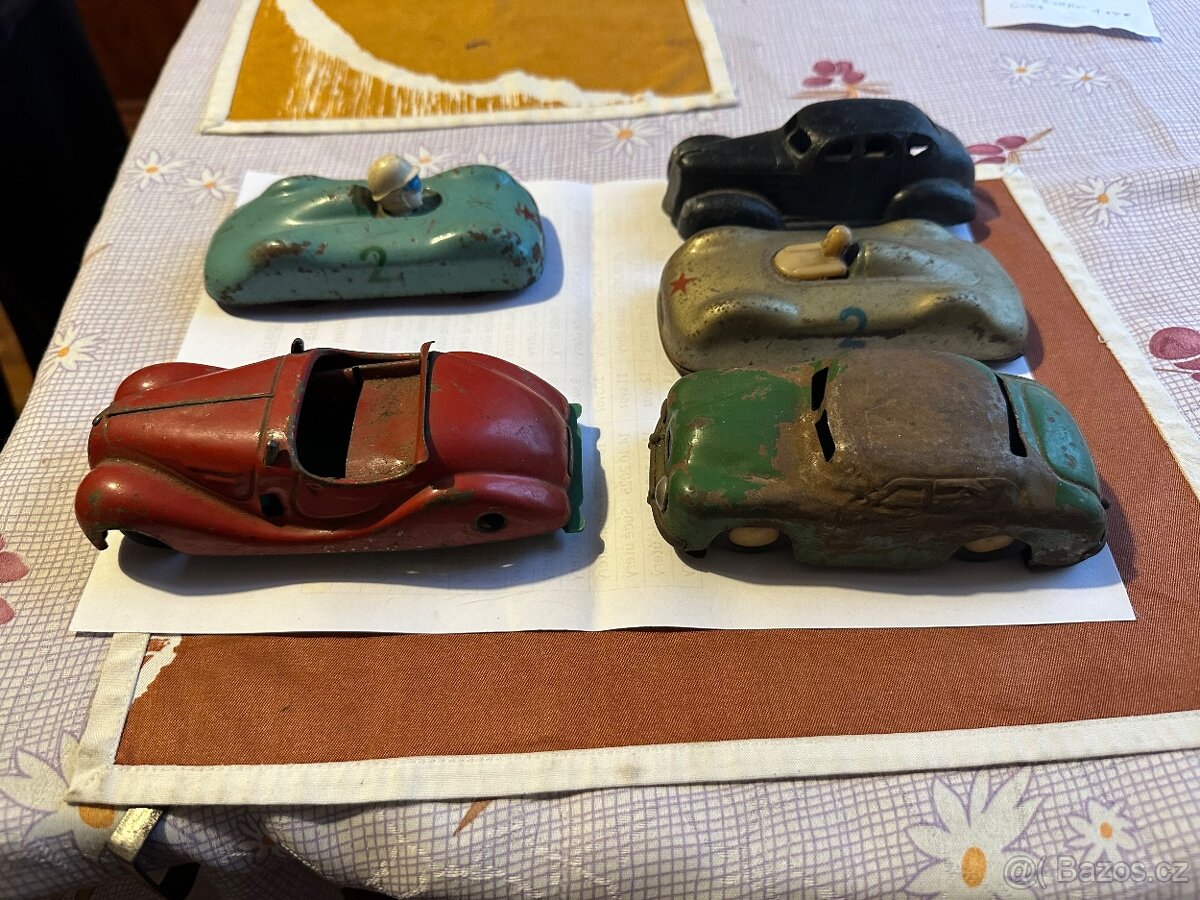 Cena: V textu. Prodám staré kovové,plechové hračky přibližně z 30-60. let 1. Hawkey 1924 Type C (Kovap, Česká republika, s krabičkou) Cena -800 Kč za kus. 2. Plechová závodní autíčka (modré, zlaté, tyrkysové se závodníky) Cena- 1500 Kč/ks, 3. Starší kovová autíčka (červené, černé, zelené, růžové – zinku nebo slitiny) Cena- 1000-1500 kč V případě zájmu kontaktujte me telefonicky nebo email. Posílám zasilkovnou nebo balíkovou. K ceně bude ještě přičtena doprava