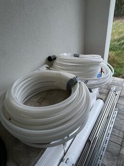 Prodam trubku na podlahove topeni Praski 17x2 mm, PE-Xa, 181 m, 65 m, 50 m. K tomu eurokonusy 15 paru, tackerovaci klamy typu tacker. 9000 ks, k tomu jeden balik systemove podlozky kermi 3 cm-10 m2.