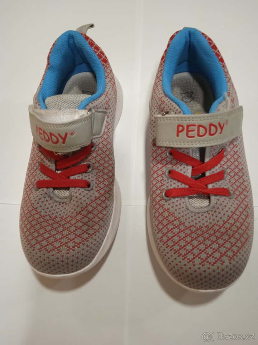Botasky Peddy Prodám dětské botasky Peddy vel. 33. Mají šedočervenou barvu, uvnitř jsou modré. Podrážka i pata uvnitř boty jsou v pořádku.