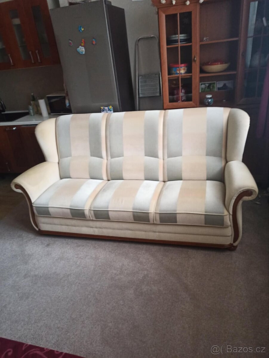 Prodám kvalitní troj sedačku délka 210cm. Pořídili jsme rohovou a rozkládací, jinak by jsme neprodávali. Aktuálně ji mám vystěhovanou v dodávce, tak je možné po dohodě rovnou někam odvést.