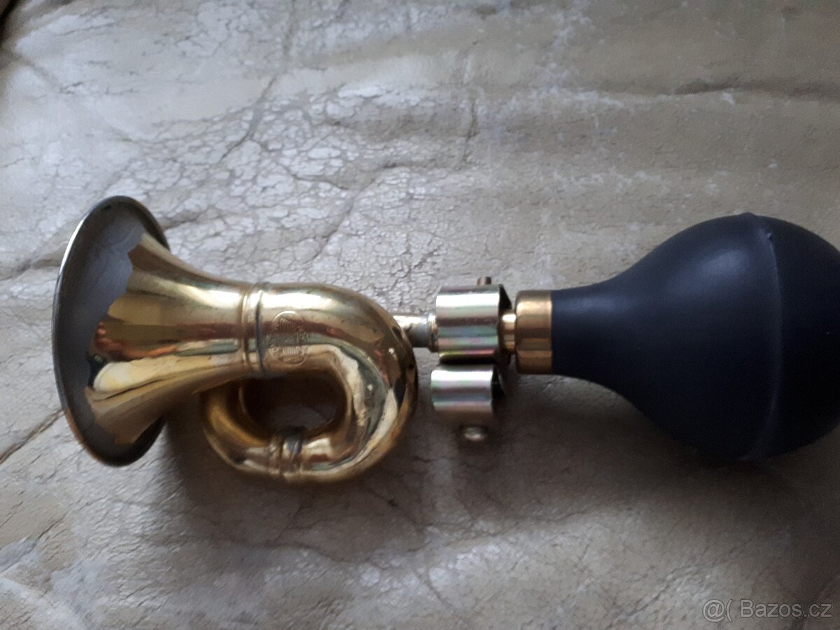 Nabízím k prodej klakson, houkačku, trubku na nějaké historické kolo nebo motocykl. Nádherný hutný zvuk, značená.