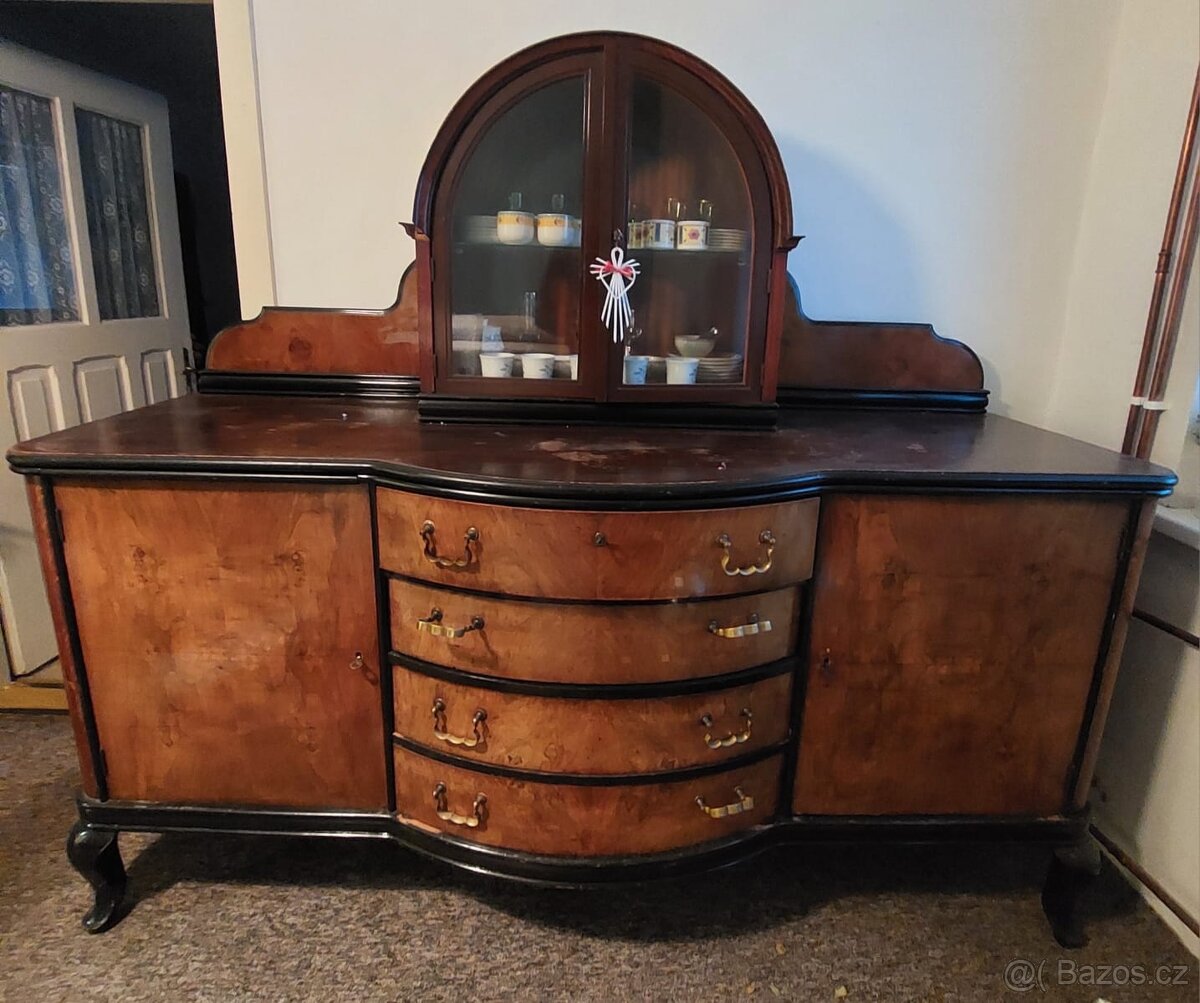 Prodám starožitnou komodu, rozměry 203 cm délka, 100cm výška desky,74cm výška nad deskou - kredenc, 174cm celkova výška,72 cm hloubka. Za hochovalá, dřevo zdravé. Vlastní odvoz.