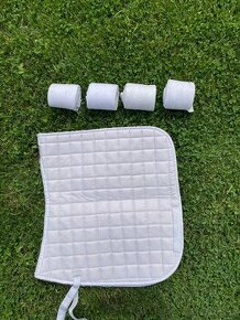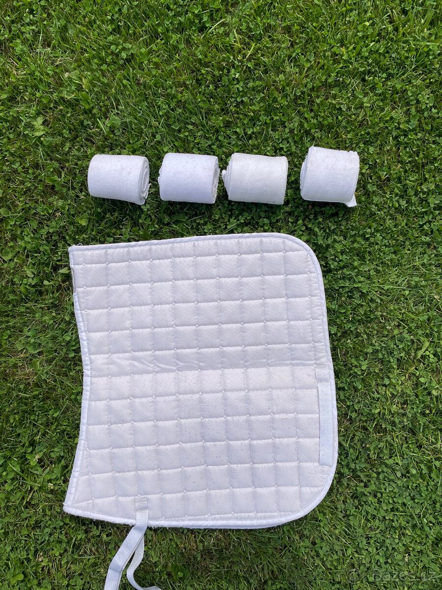 Prodám bílou drezurní sadu podsedlovky a bandáží. Vše vyprané. Dečka je Eskadron Focus. Lehké zašpinění pod sedlem, jinak bez vad. Možnost osobního předání Olomouc či Jindřichův Hradec a okolí. Prodávám více věcí, koukněte na mé inzeráty.