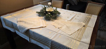 Prodám damaškový ubrus světle béžový 128 x 130 cm + 6x ubrousek 30 x 30 cm Jako nové. Nejlépe osobní převzetí v Praze Křeslicích nebo Zásilkovnou na dobírku od 115,- Kč na výdejní místo.
