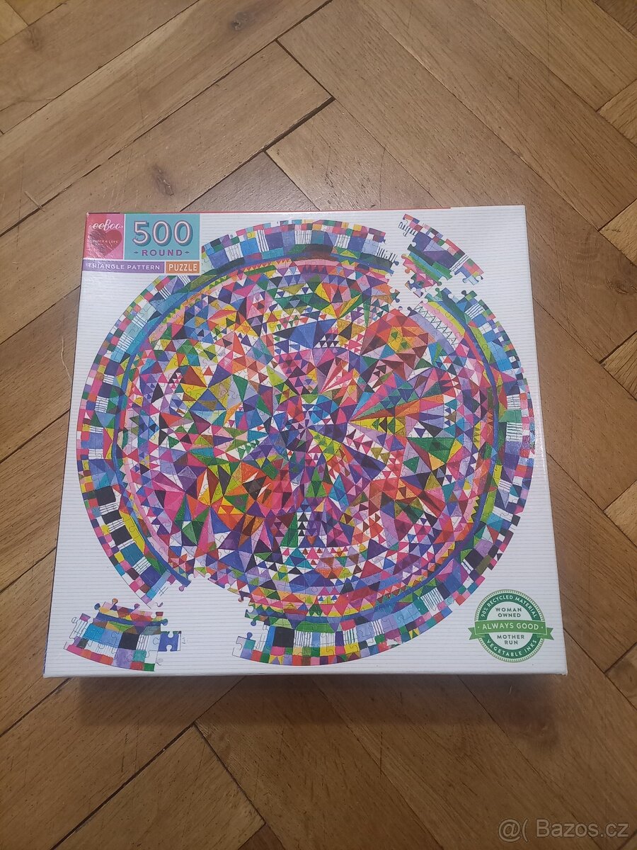 Prodám kruhové puzzle 500 dílků. Zcela nepoužité, uvnitř jako nové, jen leželo v pokojíku, tak je znát lehce na krabici - viz foto